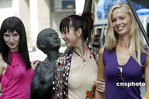| 8月30日,參加2004年新絲路世界模特大賽的二十九個國家和地區(qū)的四十多名選手齊聚浙江省杭州市,開始她們的時尚杭州之旅,大賽組委會組織參賽佳麗們游覽西湖、乘船沿運河觀光,逛杭州著名的河仿街和絲綢城,夜晚竹海漂流,使模特們進一步貼近杭州,貼近市民生活。大賽決賽將與9月5日在杭州舉行。中新社記者 盛佳鵬 攝