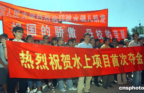 八月三十一日,北京各界民眾會聚北京首都國際機場,歡迎載譽歸來的中國奧運健兒。中新社記者:武仲林