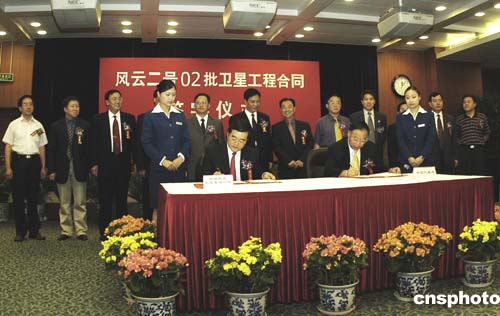 中國(guó)國(guó)防科學(xué)技術(shù)工業(yè)委員會(huì)八月三十一日在北京組織舉行“‘風(fēng)云二號(hào)’零二批衛(wèi)星工程合同簽字儀式”,在二零一零年之前,中國(guó)將用三發(fā)“長(zhǎng)征三號(hào)甲”運(yùn)載火箭發(fā)射的三顆氣象衛(wèi)星。據(jù)稱,這是中國(guó)民用航天領(lǐng)域首次簽署的業(yè)務(wù)衛(wèi)星研制生產(chǎn)合同。作者:董東