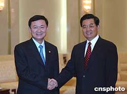 中新社北京九月三日電(記者齊彬)中共中央總書記、國家主席胡錦濤今天下午在人民大會堂會見了前來參加第三屆亞洲政黨國際會議的泰國泰愛泰黨主席、總理他信。