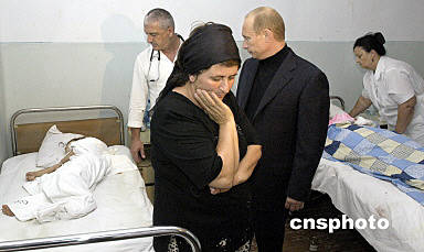 普京在天亮以前到達(dá)了別斯蘭機(jī)場(chǎng),然后乘面包車前往當(dāng)?shù)蒯t(yī)院看望受傷的人質(zhì)。他對(duì)別斯蘭的地方官員說(shuō),“俄羅斯全國(guó)同你們一起感到悲痛。”