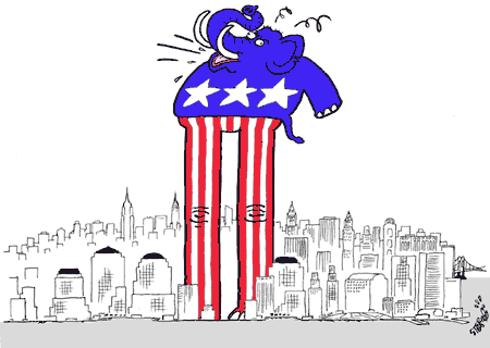中新網(wǎng)9月4日電 美國民主黨與共和黨的總統(tǒng)競選之戰(zhàn),被稱為“驢象之爭”。美共和黨在紐約操辦了歷時(shí)4天的全國代表大會,現(xiàn)任總統(tǒng)布什接受了黨內(nèi)總統(tǒng)候選人提名。共和黨借大會造勢的努力頗見成效,美《時(shí)代》周刊的最新民調(diào)顯示,布什的民眾支持率已明顯領(lǐng)先于民主黨總統(tǒng)候選人克里,可謂“象”氣沖天。