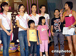 參加2004亞洲小姐競選的香港十二位佳麗,九月四日來到香港保良局以關(guān)懷社會、宣揚愛心為題親善探訪入住兒童宿舍的一班小朋友。作者:錢興強