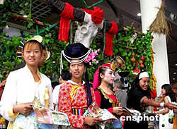 身穿各個民族服裝的旅游宣傳推銷員,成為九月三日在山東省城濟(jì)南開幕的二00四中國(濟(jì)南)國際旅游交易會上的一大亮點。作者:宋衛(wèi)東