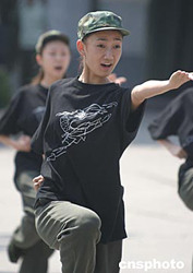 九月六日,為紀念現(xiàn)代芭蕾舞劇《紅色娘子軍》演出四十周年,中芭舞團特組織八十名演職員參加“重走娘子軍之路”的學軍活動。青春靚麗的孟寧寧將在十月八日出演新版舞劇《娘子軍》的主角吳瓊花。中新社記者:廖文靜
