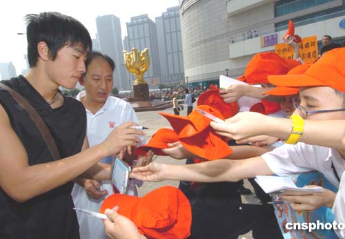 一名六年級小學(xué)生鄭同學(xué)表示,他一共取得了七名運動員簽名,其中最高興是可以取得田亮親筆簽名,亦可以近距離接觸他們,他覺得運動員很親切和友善,雖然排隊有點辛苦,但可以親眼目睹運動員,覺得很值得。