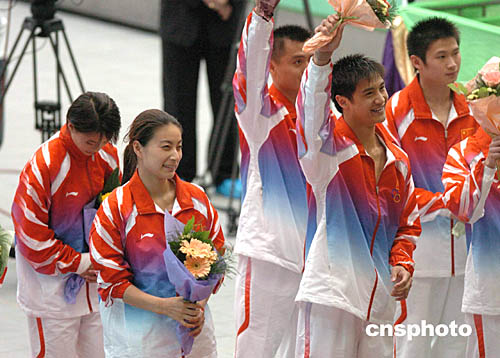 金牌跳水運動員郭晶晶、田亮等入場