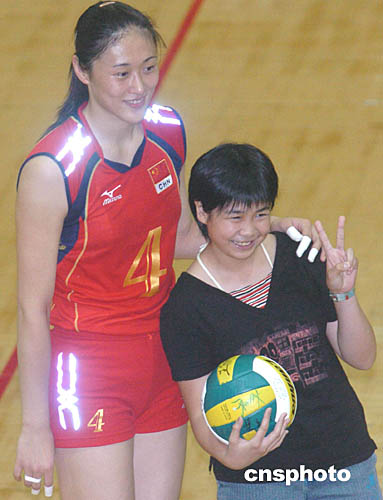 奧運冠軍中國女排的姑娘們在教練陳忠和的帶領下,今天在香港修頓室內(nèi)球場與熱愛她們的香港市民一起度過了活潑風趣而又愉快的一個下午,如此輕松而又開心的經(jīng)歷對于在球場上汗水淚水中滾打二十年的中國女排來說確實難得。