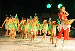 九月九日晚上,重慶市云陽新縣城云陽實(shí)驗(yàn)小學(xué)大操場(chǎng)上,全縣教師四百六十余人出席隆重集會(huì),慶祝第二十個(gè)教師節(jié)的到來,并與三千多市民群眾一同觀看演出,家長、學(xué)生成了晚會(huì)的忠實(shí)觀眾。圖為教師們表演的民族舞蹈。作者:饒國君