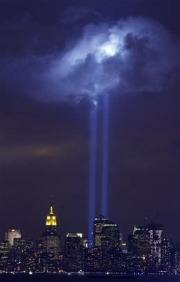 據(jù)悉,為了保證紀念活動順利進行,紐約政府在原世貿(mào)雙塔遺址進行了強光束試射。紀念日當天,兩束強光將象征當時的世貿(mào)雙塔射向云端。