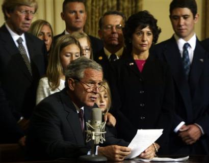 布什重申,美國會繼續(xù)在中東地區(qū)推動民主;雖然美國士兵在伊拉克和阿富汗的陣亡人數(shù)與日俱增,但“為了使美國更為安全,犧牲是絕對有必要的”。