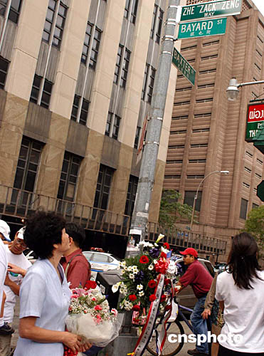 據(jù)美國(guó)僑報(bào)報(bào)道,“曾喆街”命名掛牌儀式在“911”紀(jì)念日當(dāng)天下午1時(shí)30分在紐約華埠舉行,華埠的擺也街從茂比利街到巴士打街之間地段屆時(shí)將被永久性地命名為“曾喆街”。