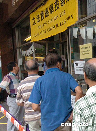 在軒尼詩(shī)道郵政局投票站,眾多香港市民排隊(duì)投票。中新社記者:錢(qián)興強(qiáng)