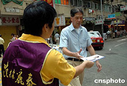 香港9月12日舉行2004年立法會(huì)選舉投票日,各候選人在各選區(qū)出動(dòng)助選團(tuán)拉票,作最后沖刺。作者:洪少葵