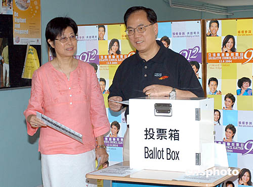 特區(qū)行政長官董建華、政務(wù)司司長曾蔭權(quán)、政制事務(wù)局局長林瑞麟、民政事務(wù)局局長何志平等政府高官今日一早紛紛到所屬選區(qū)投下莊嚴(yán)一票,以身作則一盡公民責(zé)任。