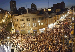 中新網(wǎng)9月13日電 據(jù)以色列《耶路撒冷郵報(bào)》報(bào)道,當(dāng)?shù)貢r(shí)間9月12日晚,數(shù)萬名以色列人先后涌上首都耶路撒冷的街頭,舉行了一場聲勢浩大的示威活動(dòng),對(duì)以色列總理沙龍?zhí)岢龅拿髂昴甑浊皬募由车貛С奋娪?jì)劃提出強(qiáng)烈抗議。