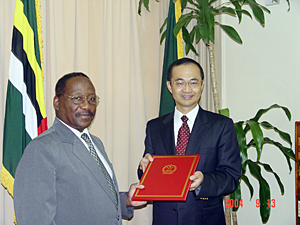 葉大使說,中多于今年三月建交,實現(xiàn)了兩國關(guān)系的歷史性突破。雙邊關(guān)系得到迅速發(fā)展,在政治、經(jīng)貿(mào)、文化、教育等領(lǐng)域進行了卓有成效的合作與交流。葉大使高度贊賞多政府在臺灣問題上堅持一個中國政策,真誠地希望兩國友好合作關(guān)系不斷得到鞏固和加強。葉大使說,我被中華人民共和國主席胡錦濤閣下任命為中國駐多米尼克國首任特命全權(quán)大使,感到非常榮幸。在執(zhí)行這一光榮和重要使命期間,我將為深化兩國關(guān)系和增進兩國人民之間的友誼竭盡全力。