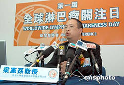 第一屆全球淋巴瘤關(guān)注日新聞發(fā)布會9月14日在香港大學醫(yī)學院大樓舉行,香港大學醫(yī)學院血液及腫瘤科主管梁憲孫教授表示,本港在91至01年十年期間,淋巴瘤個案增加超過兩成,達到640宗。港大醫(yī)學院及血癌基金,將15日訂為全球淋巴瘤關(guān)注日。作者:鄧慶樂