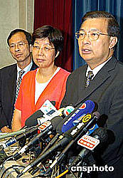圖為會后譚耀宗向新聞界作簡單匯報。