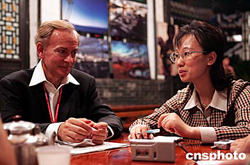 中法兩國文化交流日益密切。九月十七日,法國駐華大使館文化專員白尚化(左)在與中新社記者交談平遙國際攝影大展的所見所聞。作者:張云