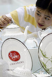 由中國(guó)國(guó)際貿(mào)易促進(jìn)會(huì)主辦的第七屆唐山中國(guó)陶瓷博覽會(huì),九月十八日在新落成的唐山國(guó)際會(huì)展中心開幕。中國(guó)陶瓷博覽會(huì)自一九九八年開始舉辦至今已歷經(jīng)七屆,目前唐山中國(guó)陶瓷博覽會(huì)已成為面向國(guó)內(nèi)外、有較大影響力的大型品牌專業(yè)會(huì)展。僅二00三年,唐山市陶瓷產(chǎn)類產(chǎn)品出口創(chuàng)匯達(dá)一點(diǎn)五億美元。中新社記者:毛建軍