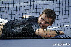 九月十八日,在北京網(wǎng)球中心中央球場(chǎng)進(jìn)行的ATP男子單打半決賽中,俄羅斯選手尤茲尼以二比零戰(zhàn)勝泰國(guó)網(wǎng)球名將斯里查潘晉級(jí)決賽。中新社記者:盛佳鵬