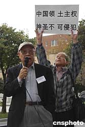 美東華人當(dāng)?shù)貢r(shí)間九月十八日在華盛頓集會(huì)示威,抗議日本不正視侵華戰(zhàn)爭(zhēng)罪行。作者:余東暉