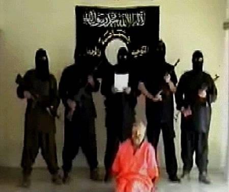 據(jù)英國媒體報道,錄像顯示是與卡伊達組織有聯(lián)系的伊拉克極端份子扎卡維親自執(zhí)行斬首。