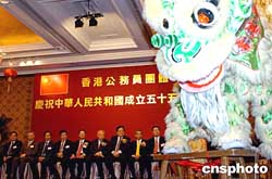 9月22日,香港公務員團體在金域假日酒店舉行慶祝中華人民共和國成立五十五周年酒會,香港特首董建華、公務員事務局局長王永平等嘉賓出席典禮。作者:趙振清