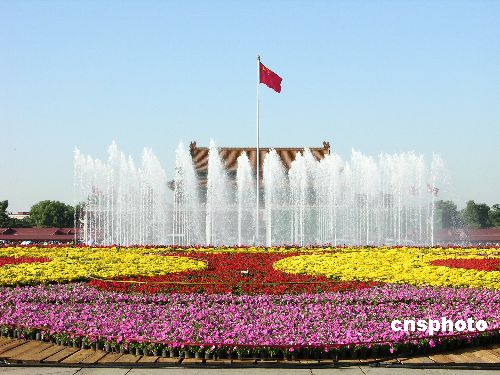 為慶祝中華人民共和國(guó)成立55周年,30萬(wàn)盆花亮相天安門(mén)廣場(chǎng)。作者:弓長(zhǎng)勇