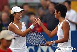 9月24日,奧運(yùn)金牌組合李婷/孫甜甜在北京舉行的首屆中國網(wǎng)球公開賽WTA女雙比賽中以2比0輕松戰(zhàn)勝另一對(duì)中國選手彭帥/謝彥澤,順利晉級(jí)第三輪。作者:武仲林