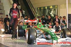 九月二十四日晚,作為捷豹車隊(duì)唯一服裝贊助商的德國著名休閑服裝品牌Tom Tailor 04秋冬時(shí)裝發(fā)布會在上海舉行。發(fā)布會現(xiàn)場商家別出心裁的“請”來了F1賽車為本場時(shí)裝秀助陣,美女加賽車吸引了不少觀眾的眼球。作者:湯彥俊