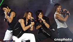 臺灣當紅組合ENERGY出席在重慶市奧體中心舉行的“沸點空間九·二五演唱會”。ENERGY勁歌熱舞讓全場歌迷沸騰不已。作者:郭晉嘉