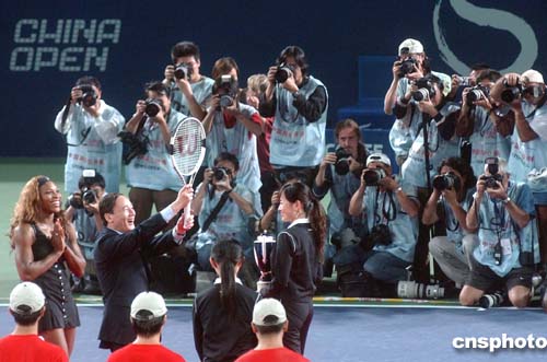 九月二十六日,頭號(hào)種子美國(guó)名將小威廉姆斯在北京舉行的中國(guó)網(wǎng)球公開賽WTA女單決賽中以二比一戰(zhàn)勝美網(wǎng)新科狀元俄羅斯名將庫茲涅佐娃,奪得冠軍。作者:武仲林