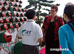 南通別具特色的民間藝術(shù),引起正在該市參加首屆世界大城市帶高層論壇嘉賓們的興趣。圖為新西蘭前總理希普利在饒有興趣地觀賞南通的哨口風(fēng)箏表演.作者:王曉紅