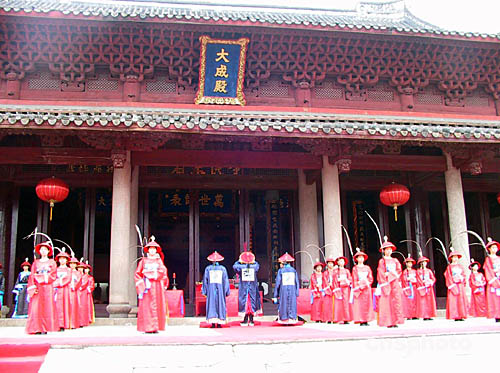 九月二十八日,福州舉行紀(jì)念孔子誕辰2555周年祭祀活動?鬃雍笠岽、孔學(xué)專家以及福州市社會各界代表共一千多人參加紀(jì)念活動。作者:王東明