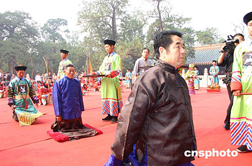圖為孔子第七十七代嫡孫孔德班率孔氏后裔在大成殿前舉行了家祭。作者:鞠成利