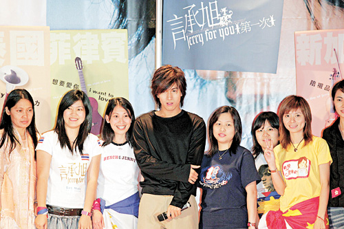 昨日的新碟發(fā)布會特別款待來自各地的七十位歌迷,Jerry特別練習(xí)不同語言,向各地歌迷打招呼。這是Jerry多年來,首次在外地過的一個中秋節(jié),對于中秋節(jié)應(yīng)該人月兩圓之說,Jerry沒有正面回答,只表示現(xiàn)時都不錯,因有很多工作人員陪伴。被問到?jīng)]有女友陪過中秋,可會感寂寞?Jerry說這兩三年都已習(xí)慣了。至于是否相約緋聞女友林志玲時,他表示對方工作很忙,且強(qiáng)調(diào)二人只是蠻好的朋友;有沒有發(fā)展的可能?他則以“還不知道”作回應(yīng)。
