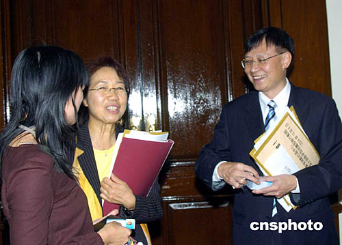 當(dāng)選香港立法會(huì)議員的陳婉嫻、王國興,10月6日出席立法會(huì)首次會(huì)議,與記者交談甚歡。作者:洪少葵