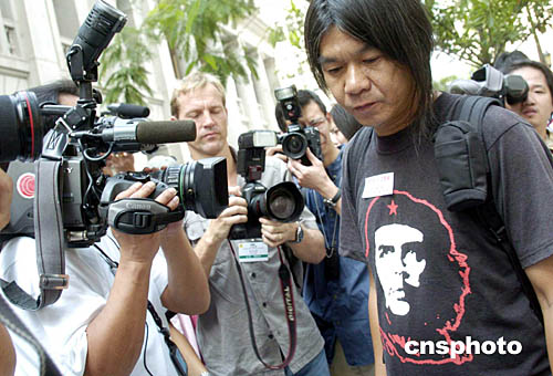 引人爭議、外號“長毛”的梁國雄,10月6日出席香港新一屆立法會首次會議宣誓就任立法會議員。他按照立法會誓辭宣誓前,大聲狂呼。立法會部分議員對梁國雄的宣誓方式表示遺憾,認為議員需要遵守議事規(guī)則。有輿論指“長毛”行為出位,實有作秀之嫌。圖為梁國雄在進入立法會大樓前受到大批傳媒及警方“關(guān)照”。作者:洪少葵