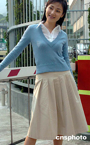 香港藝員萬(wàn)綺雯出任電視劇《爸爸兩邊走》女主角,十月七日在亞視探班拍照。