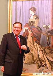 | “法國印象派繪畫珍品展”中外記者招待會十月八日在中國美術(shù)館舉行。法國奧賽博物館館長勒穆瓦納先生向媒體介紹克勞德·莫奈的作品《戈迪拜爾夫人》。“法國印象派繪畫珍品展”將于十月十一日至十一月二十七日在中國美術(shù)館舉行。本次展覽展出法國精選出的51幅具有代表性的印象派作品,它們均出自法國印象派繪畫史上最重要的十四位畫家之手,這也將是中國舉行的水平最高、最為重要的一次西方繪畫作品展。作為“法國文化年”項目的重頭戲,法國國家收藏品中的印象派珍品將于二零零四年十月起,連續(xù)六個月在在中國北京、上海、香港展出。作者:張勤