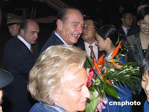 8日晚上,法國(guó)總統(tǒng)雅克·希拉克一行300多人乘坐的5架專機(jī)抵達(dá)成都。