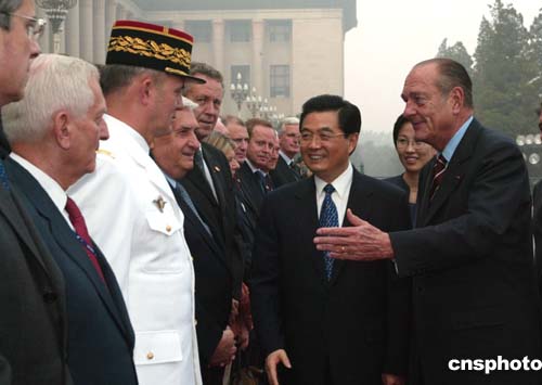 會談前,胡錦濤在人民大會堂東門外廣場舉行儀式,歡迎希拉克到訪。會談后,兩國元首出席了中法兩國有關(guān)合作文件的簽字儀式。