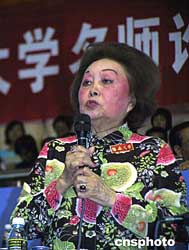 著名美籍華裔陳香梅女士十月九日在?谑芷笧楹D洗髮W(xué)名譽校長。圖為陳香梅女士今天下午在海南大學(xué)聯(lián)誼館舉行中美關(guān)系回顧與展望的學(xué)術(shù)報告會。作者:王辛莉
