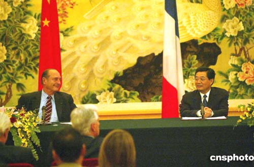 希拉克表示,完全贊同胡錦濤對進(jìn)一步發(fā)展兩國全面戰(zhàn)略伙伴關(guān)系的四點(diǎn)建議,強(qiáng)調(diào)法方愿同中方共同努力,不斷加強(qiáng)法中在各個領(lǐng)域的友好合作。