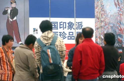 十月十日,“法國印象派珍品展”在北京中國美術館開幕,展品匯集了法國印象派代表人物莫奈、馬奈等大師的五十一幅原作,成為中法文化年中最重要的展事之一。據(jù)悉,由于展品屬于法國國家的藏品,保險金額高達五億歐元。