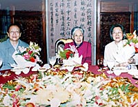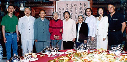 偉人們?yōu)榱耸聵I(yè),付出畢生的一切,并沒有給親屬后人留下什么物質(zhì)財富,甚至連所有家庭都應(yīng)有的溫情回憶,也極其有限。歷史就是歷史,無法改變,更不能抹去;當(dāng)事者的回顧總是帶著濃重的個人色彩和不可避免的片面性;旁觀者的記憶更隨著境遇變遷因人而易。眼前,這一切已是“而今邁步從頭越”。三代人的歡宴進(jìn)行了兩個多小時,錄像機(jī)攝下了充滿歡聲笑語的一幕幕場景。媽媽和姨媽興趣盎然,偶爾交頭議論,不時插上幾句,始終滿意地笑著。銀絲皓首的光美奶奶沒有怎么講話,慈祥而超然地看著孩子們,孱弱清癯的面龐上泛起紅暈,顯得那么幸福,那么美麗!