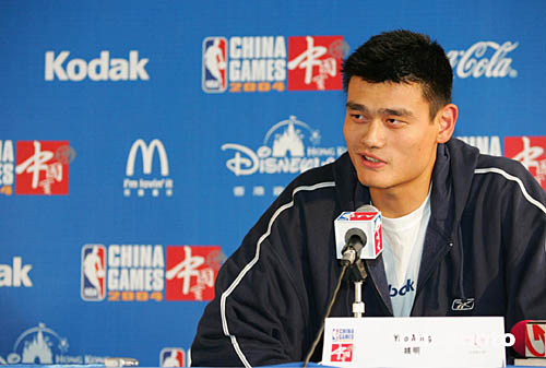 “國(guó)王”和“火箭”兩支籃球隊(duì)先后于十月十二日凌晨抵達(dá)上海,備戰(zhàn)十四日舉行的NBA中國(guó)賽。當(dāng)日中午,姚明出席在上海體育館舉行的新聞發(fā)布會(huì)。作者:湯彥俊