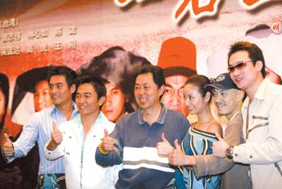《一石二鳥》是今年明星陣容非常強的賀歲搞笑片。吳宗憲、林心如、雪村、陳龍、吳孟達、曾志偉、高虎,7位內地、香港、臺灣的大腕明星都在片中有精彩表演。正像雪村昨天在發(fā)布會上所說的,這部片子是個純粹的商業(yè)電影,“就是沖著錢去的。”在戲中,本來就有喜劇效果的雪村穿上了難得一見的古裝戲服,頭發(fā)也被設計成了雷震子的發(fā)式,更大膽使用鐵鍬作為自己的防身武器,實在是搞笑得不得了。而吳宗憲更是與林心如大演親熱對手戲。